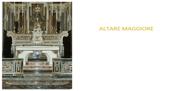 L'altare maggiore, in marmo, finemente lavorato, offre allo sguardo la visione incantata di una danza policroma, in cui l'elemento floreale si sposa con gli stucchi degli angeli, che a rilievo si allontanano dalla parete. Quale cornice all'essenza divina di Cristo Eucaristico, il contesto generale è un recinto tornito di una balaustra che delimita il sacerdozio ministeriale dal popolo fedele.