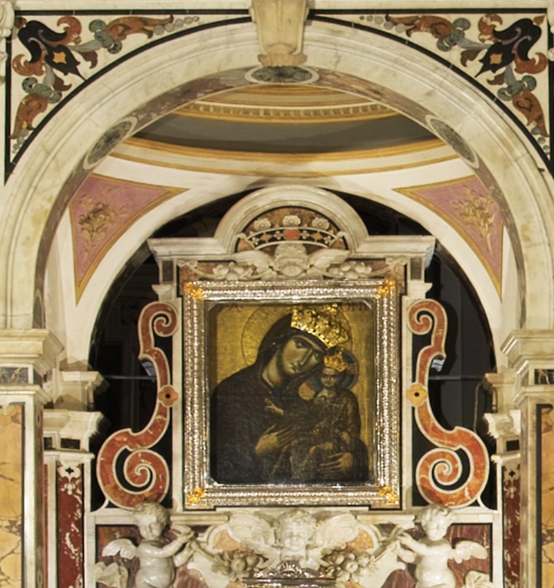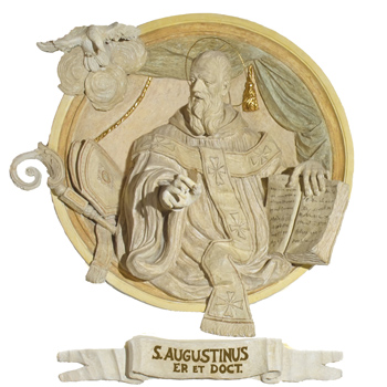 Ai lati dell'altare due meravigliose immagini circoscritte da un ovale di stucco lavorato, si stagliano le immagini, emblematicamente significative, perché rappresentano l'Oriente e l'Occidente cristiano e che in concreto nell'evoluzione storica stanno a significare l'orma lasciata dall'Ordine di S. Basilio e di S. Agostino quale segno di riferimento di chi ha formato la mentalità del nostro Occidente.