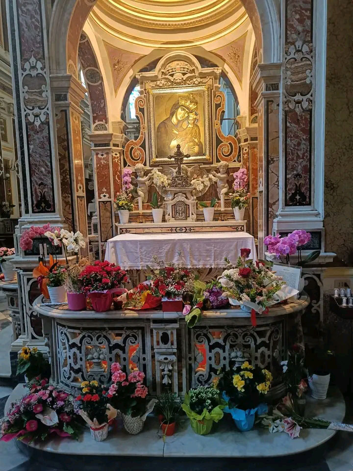 Il quadro della Madonna Nel Tempietto su un piccolo altare è esposta la Materdomini. La Sacra Immagine, ordinariamente chiamata "la Cona" dipinta su legno, riproduce Maria che reca sul braccio sinistro il Bambino Gesù. Il solenne aspetto delle immagini ripercorrono nello stile le tradizionali fattezze delle icone bizantine. POSTED ON: JULY 12,2024
