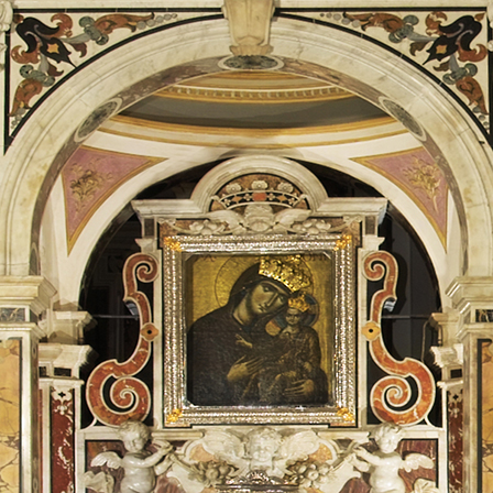 L'affresco è collocato nel vano attiguo alla sacrestia, a ridosso di un meraviglioso lavabo in marmo. I sacerdoti, nell'imminenza delle celebrazioni, facevano, secondo le regole liturgiche, le ordinarie abluzioni. Nello svolgimento di questo rito, alzando gli occhi, invocavano la Vergine per avere il candore del corpo e la purità dello spirito.